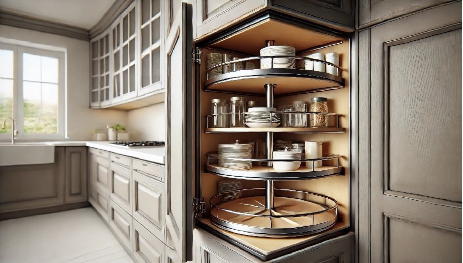 Ecken und schwer zugängliche Bereiche in der Küche werden leider oft vernachlässigt. Dabei bieten sie viel Potenzial für die Aufbewahrung von Küchenutensilien. Karussell-Schränke oder ausziehbare Ecklösungen sind perfekte Möglichkeiten, wenn du ungenutzten Raum in der Küche optimal ausschöpfen möchtest. Auch schmale Vorratsschränke mit ausziehbaren Regalen bieten viel Stauraum auf wenig Fläche. Das ist natürlich ideal für kleinere Küchenutensilien und Vorräte.