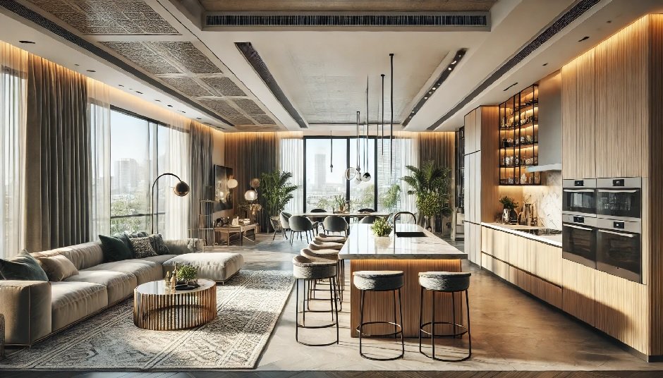 Ästhetik und Design: Ein einheitliches Designkonzept, das Küche und Wohnbereich harmonisch verbindet, ist entscheidend. Die Auswahl passender Farben und Materialien trägt dazu bei, ein stimmiges Gesamtbild zu schaffen, das den offenen Charakter der Küche unterstreicht.